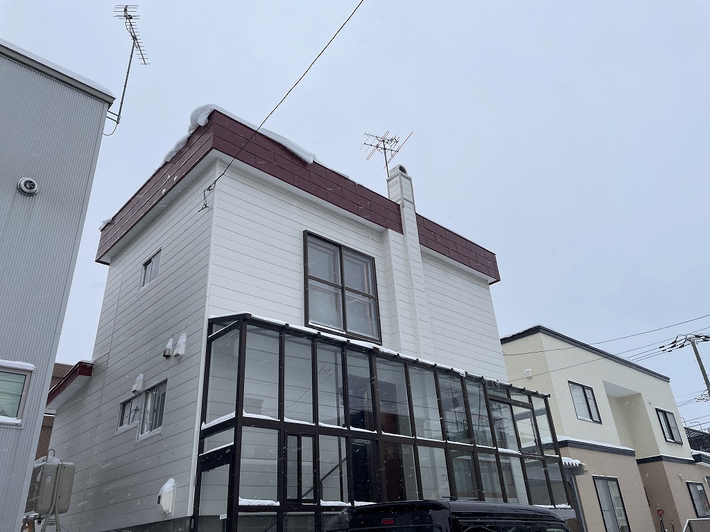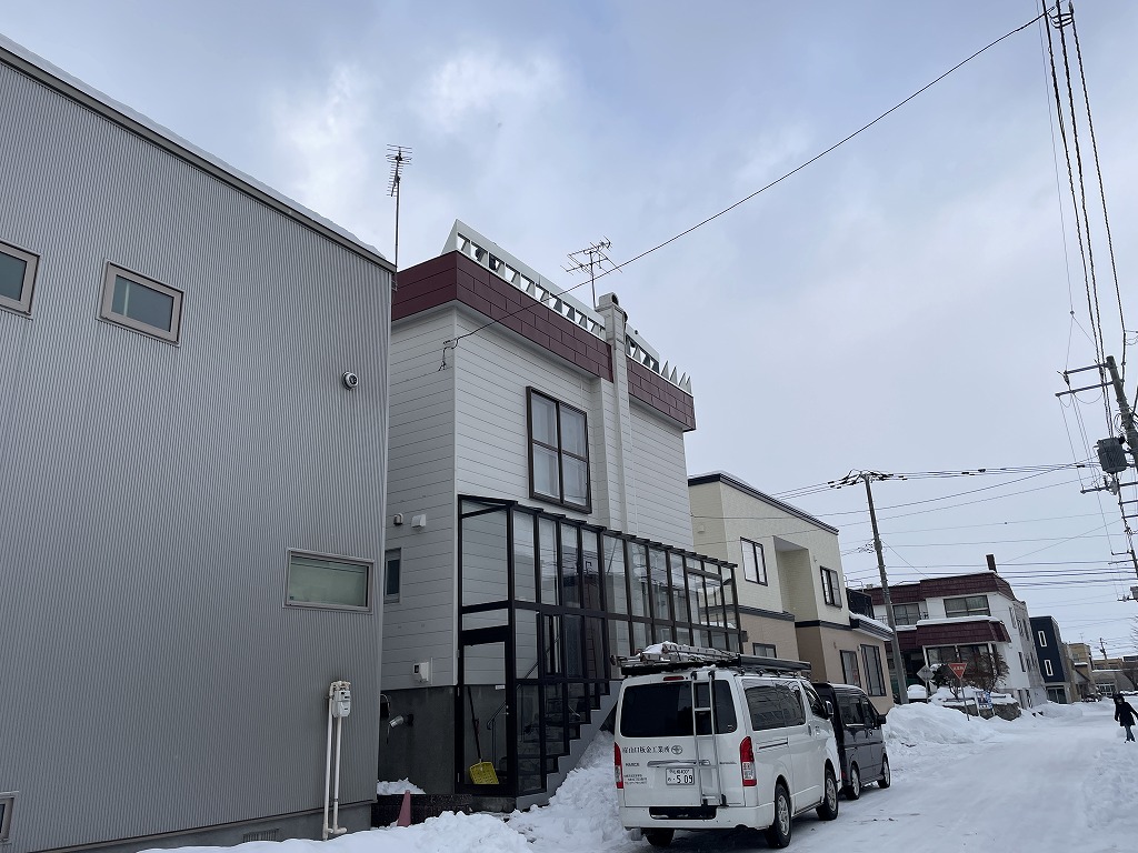 t様邸にうかがった折に、積雪時に風除室の上に雪の固まりが落ちてガラスが割れ、交換した事があるとお悩みをご相談いただく。
