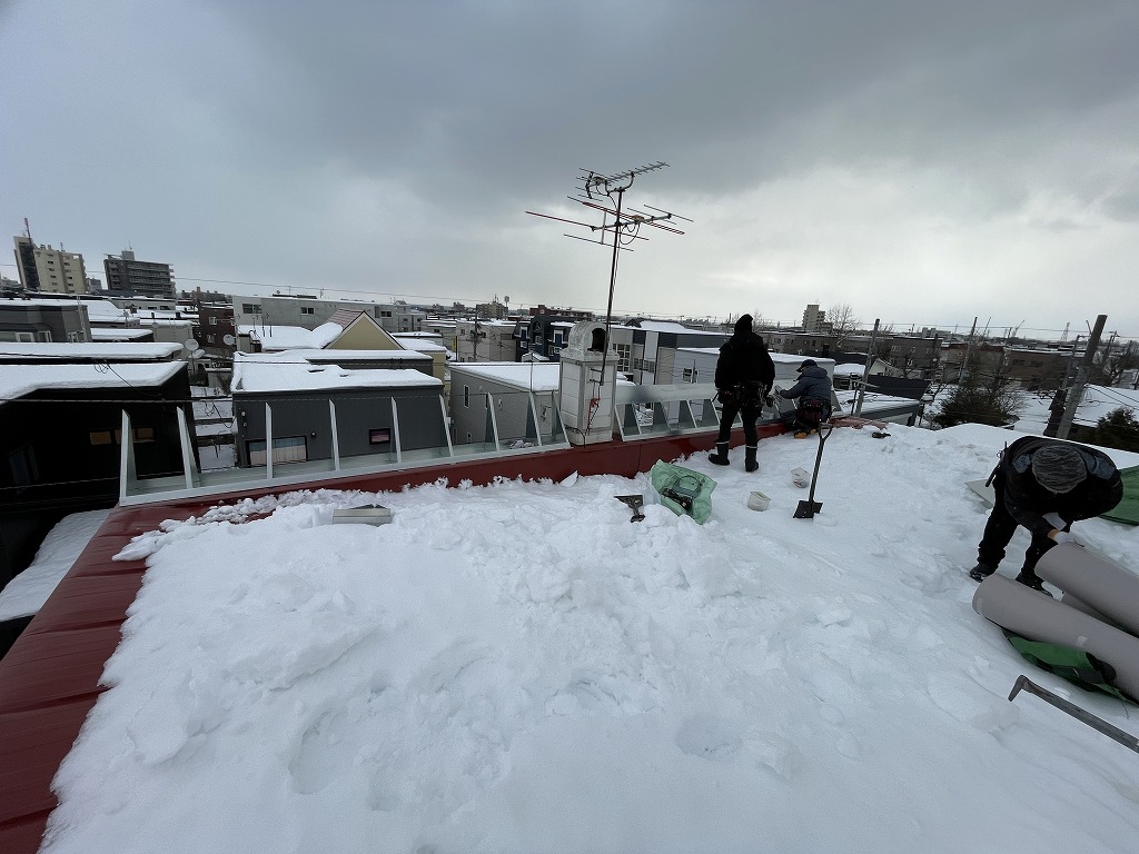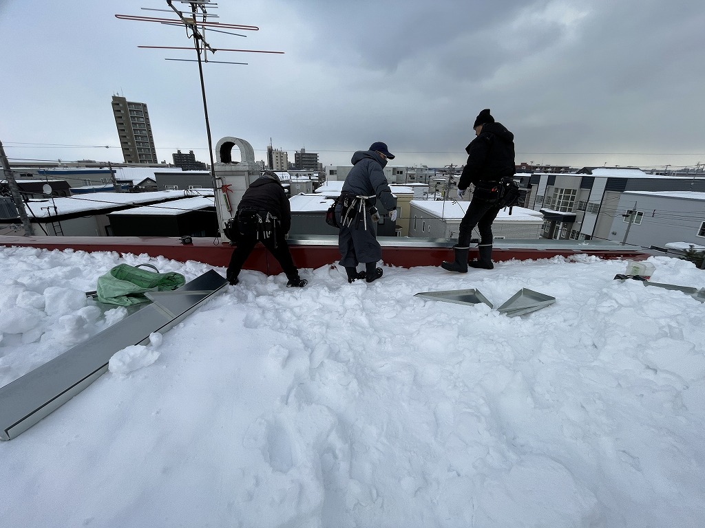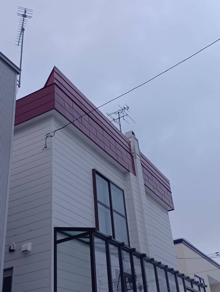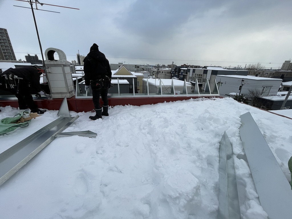維持費のかからない板金での雪庇止めをご提案し、設置する事になった